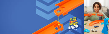 It's the groundbreaking evolution of our signature orange track! This innovative track system features a simple snap-together design, making it easier for kids to build, play, and put away.
