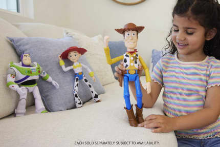 Buzz gets big! This large Buzz Lightyear action figure will bring BIG thrills to fans of the Space Ranger from Disney and Pixar's Toy Story films. With the super posability of 13 movable joints and a size that's easy to handle, it's a grand opportunity for young kids to re-enact signature moves and poses of this reliable friend and hero and imagine their own. Who doesn't need a cool spaceman as a best friend? Fan can collect all the movie-authentic large figures, sized relative to each other for realistic storytelling. Each sold separately and subject to availability. Makes a great gift for Toy Story fans ages 3 years and older. Colors, dimensions and decorations may vary.