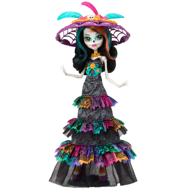 Monster High honors the skulltastic traditions of Día de Muertos with a stunning Skelita Calaveras doll. Her colorful gown is strewn with papel picado -- decorative paper banners that, when stirred by the breeze, are a sign that dearly departed spirits have arrived. To Skelita Calaveras, hanging papel picado hearkens the arrival of the howliday season and all its joyful celebrations! During this time of gathering with family and loved ones, let this collector doll be a cherished keepsake for years to come. Doll stand included. Doll cannot stand alone. Colors and decorations may vary.